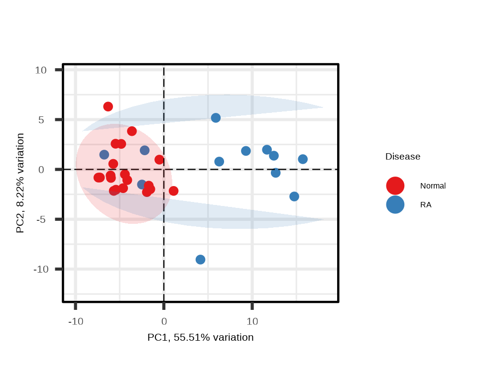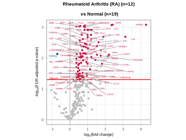 title = paste0("Rheumatoid Arthritis (RA) (n=", n_ra, ") \n vs Normal (n=", n_normal, ")"),