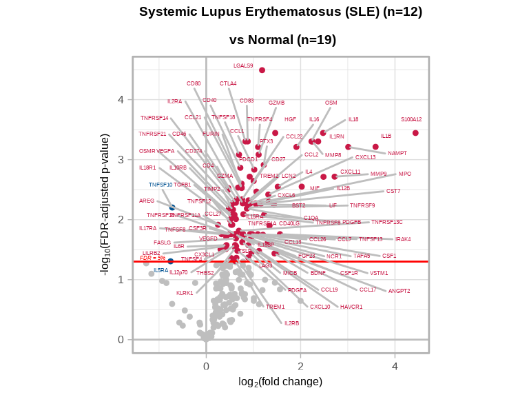 title = paste0("Systemic Lupus Erythematosus (SLE) (n=", n_sle, ") \n vs Normal (n=", n_normal, ")"))