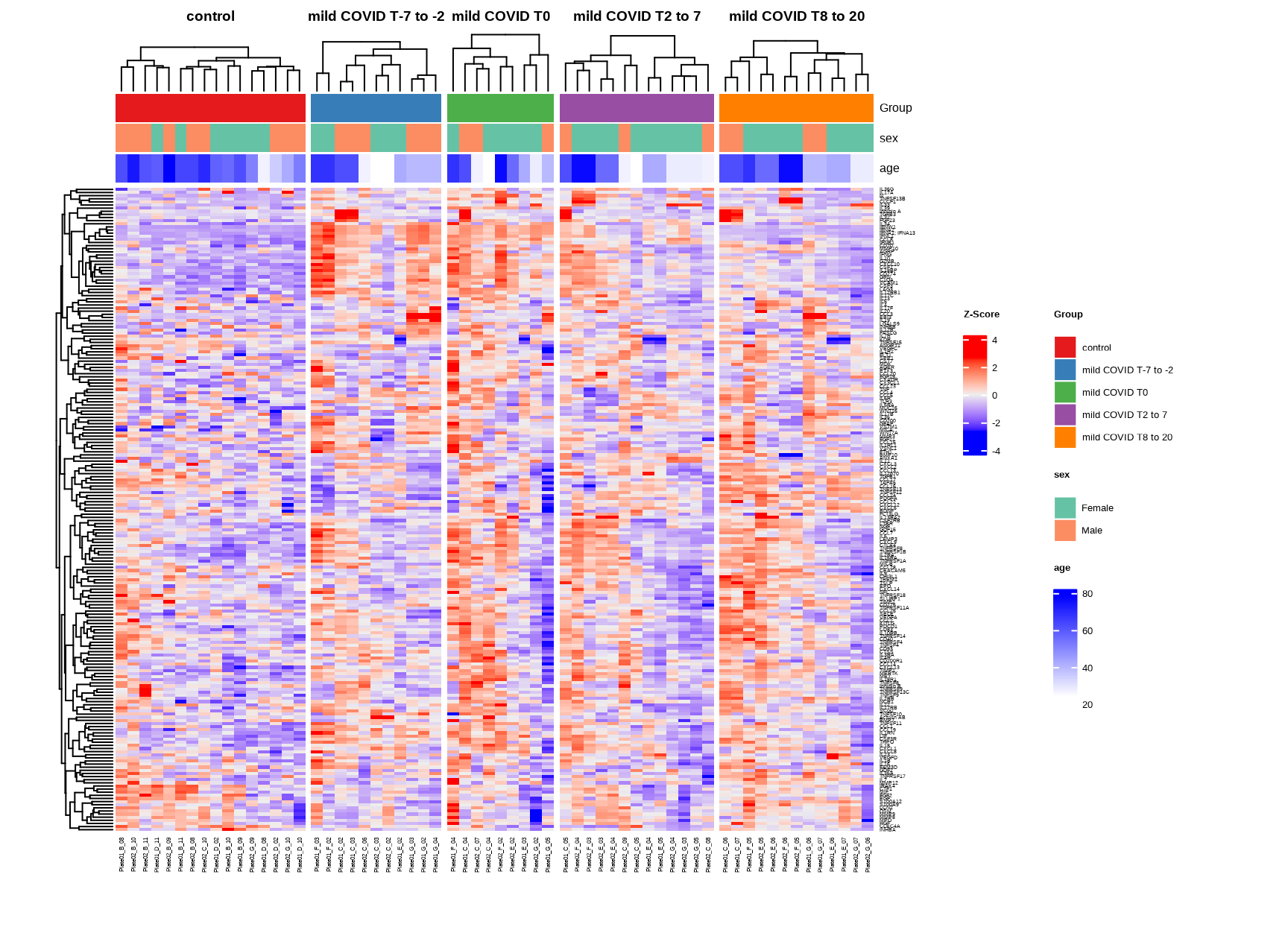 Group = factor(Group, levels = c("control", "mild COVID T-7 to -2", "mild COVID T0" ,