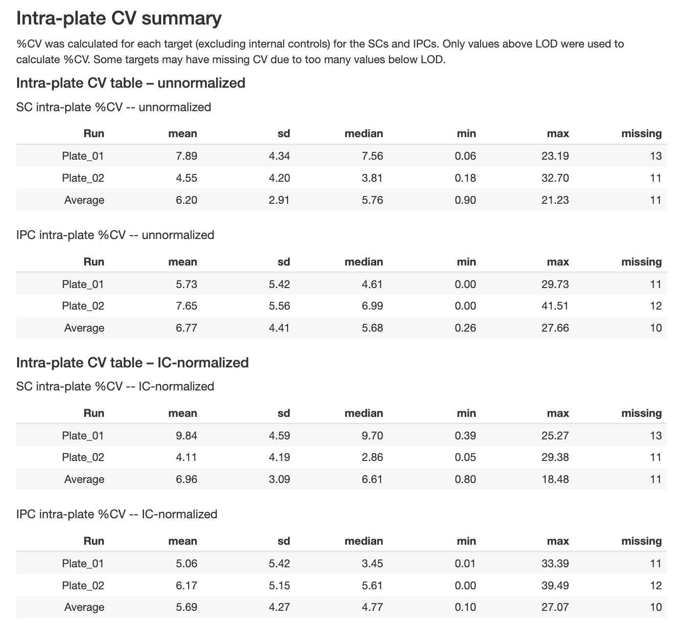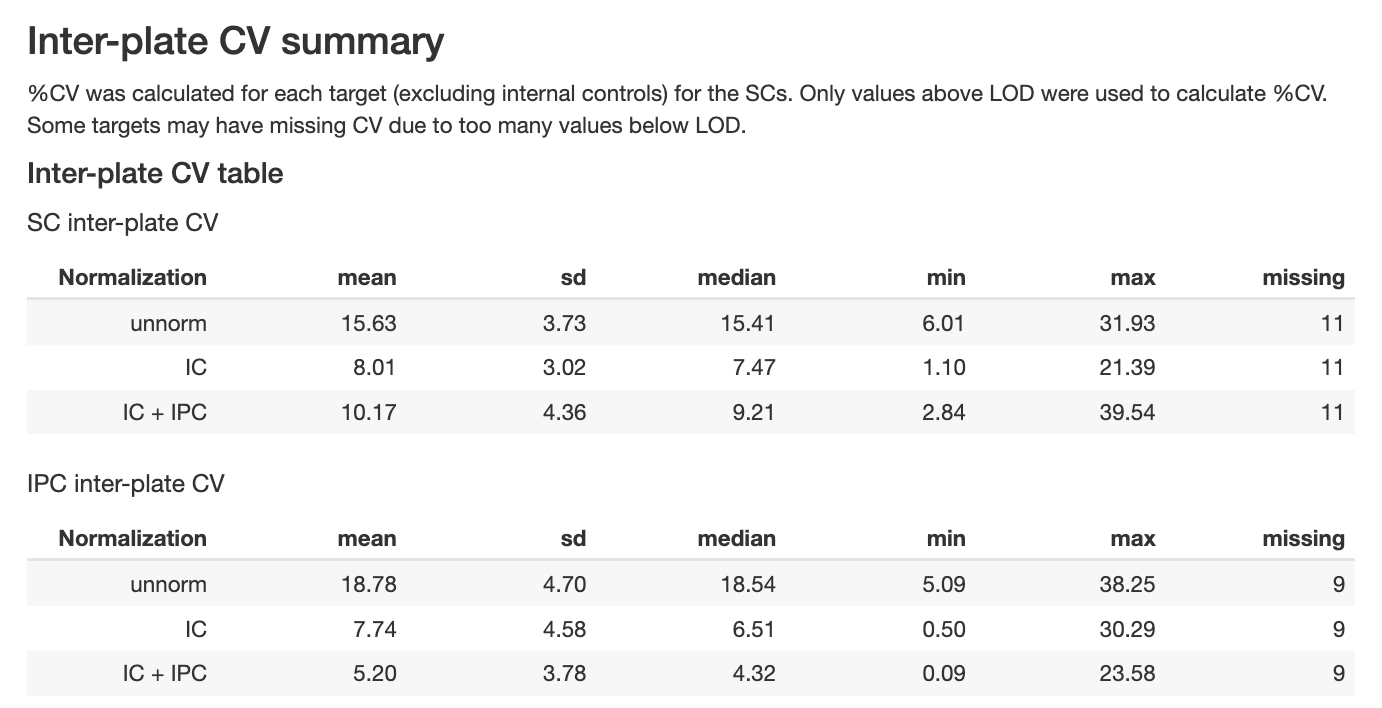 - Definition: Median intra-plate CV of IC-IPC normalized reads for all IPC targets across replicates