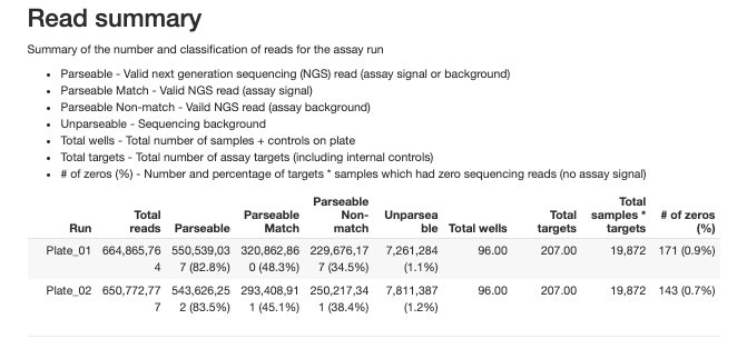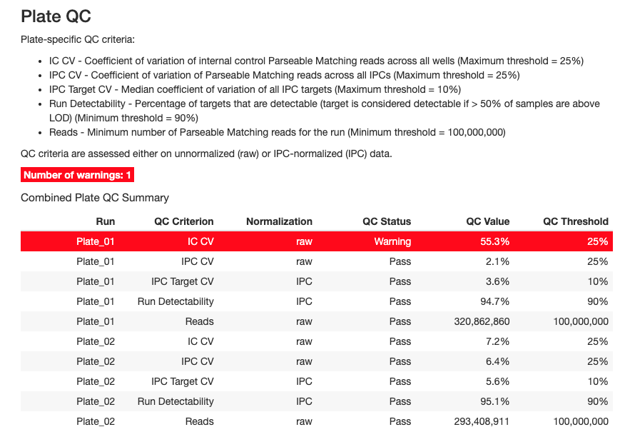 - Definition: CV of internal control Parseable Matching reads across all wells